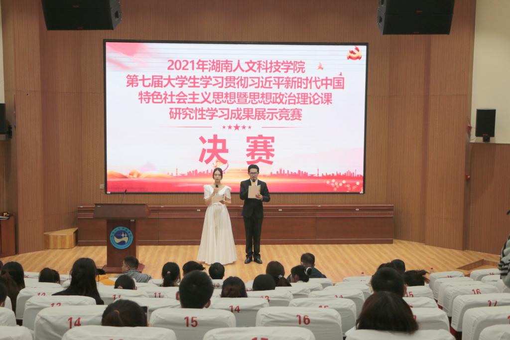 为深入贯彻落实新时代学校思想政治理论课改革创新要求,全面推动习近平新时代中国特色社会主义思想进教材进课堂,激发大学生理论学习积极性,11月19日晚上19:30,beat365第七届大学生学习贯彻习近平新时代中国特色社会主义思想暨思想政治理论课研究性学习成果展示竞赛决赛在匠成楼报告厅展开。参加此次比赛的评委专家有学报编辑部主任彭分文教授、文学院党总支书记尹钟宏、教务处副处长曾真飙、马克思主义学院副院长杨国辉博士、马克思主义学院伍揆祁教授。