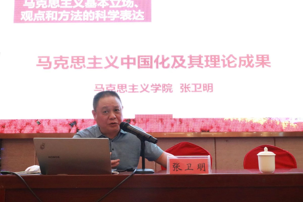 讲座内容包括“马克思主义中国化的历史必然性、马克思主义中国化的内涵认知、学好用好马克思主义中国化最新成果”三个部分。张卫明教授从马克思的生平、著作,马克思主义的来源、构成部分、基本理论谈起,到马克思主义中国化的特征、对马克思主义中国化的理解,层层递进,深刻揭示了马克思主义中国化既是马克思主义理论发展的内在要求,又是解决中国实际问题的客观需要。在谈到学好用好马克思主义中国化最新理论成果时,张卫明教授指出学好用好马克思主义中国化最新理论成果要做到四点:即筑牢思想根基,投身伟大斗争;坚持人民至上,置身伟大工程;弘扬中国精神,献身伟大事业;弘扬中国精神,献身伟大工程。讲座最后,张卫明教授表达了对全体学员的希冀:“马克思主义中国化,是一个宏大的主题、是一个历史的进程、是一系列伟大的实践和成果,我们要学好用好马克思主义中国化最新理论成果,用马克思主义立场、观点、方法投身伟大斗争、置身伟大工程、献身伟大建设,为建设社会主义现代化强国、实现中华民族的伟大复兴而奋斗!”