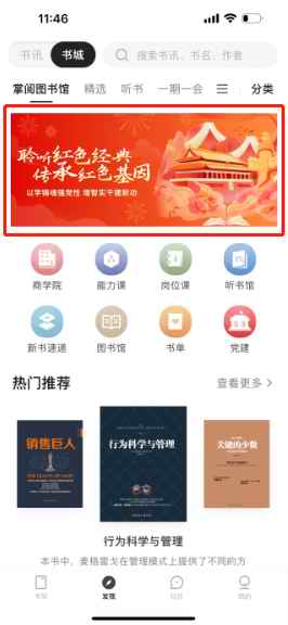 2. 学习内容(入口):书城顶部“聆听红色经典 传承红色基因”红色听书学习专题
