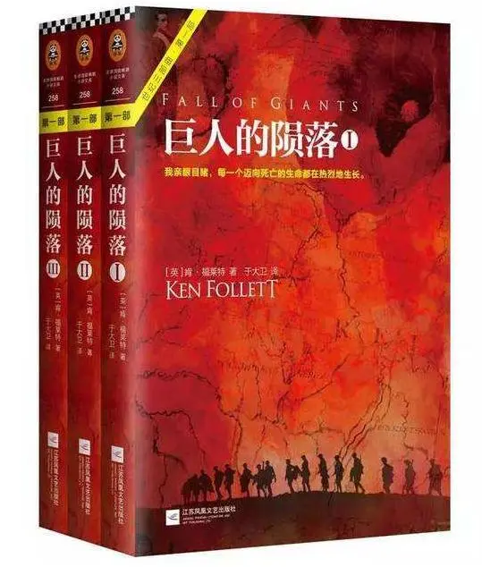 合上那绯红的书页,深深地呼出了一口气,我的精神依然沉浸在这波澜壮阔的历史画卷里。闭上双眼,整理着五大家族迥然不同而又就隔不断的命运,感受着他们对于战争的抵触和对于爱情的珍视。故事的开头,以英王乔治五世加冕为时间原点,转而开始介绍少年矿工比利第一次下矿。初读时感觉有些突兀,但当读完故事的结尾:工党领袖被任命为英国总理,再回首时,才意识到作者如此安排的巧妙。开头凸显了封建等级制度的兴盛也就是“巨人”的炙手可热,同时也写出了以比利为代表之一的凡人的状况,而结尾则间接地点出力大无穷的巨人已然陨落,普普通通的凡人走上了历史舞台。新旧更替,是自然界的必然规律,陨落的是巨人,崛起的是凡人。更加准确地说是,崛起的是凡人的信仰和人性。比利第一次下矿,被普莱斯戏弄,置身在黑暗无光的矿洞里工作,是信仰,让他度过了那黑暗的一天。也是信仰,让在身处战争中的他们的灵魂有了一丝慰藉。也是信仰,支撑着他们取得了属于工人阶级的应得利益。在苦难中,闪耀的还有人性。不论是比利和格利戈里对上级命令的理性对待,还是茉黛与沃尔特的忠贞爱情,都是人性的最佳体现。这本书里面我很喜欢格雷戈,他是个真正的男人!对待弟弟,亦兄亦父,在弟弟代替他去美国避难后选择照顾弟弟的女友,他是真的爱这个女人,但是这个女人爱的是他的弟弟,所以他压抑者内心,选择尊重她不碰她,他不被情欲控制,理性又自持,善良又果断,爱得那么深沉,却能理性的压抑住,是个真正的男人!巨人的陨落,不仅是国家的陨落,家族的衰败,更是一个时代的更迭,安利安利!
