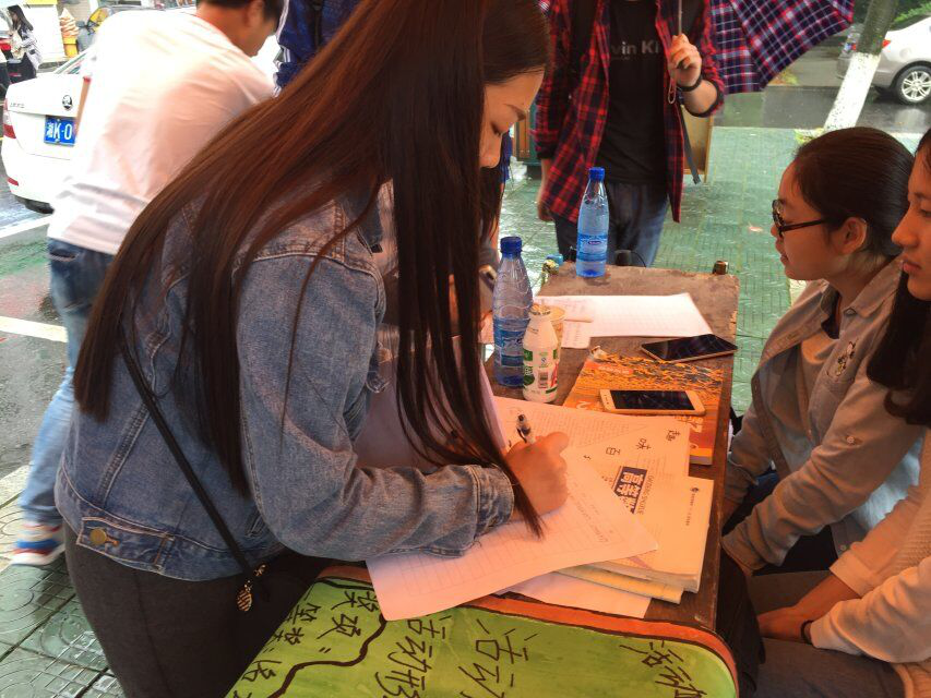 报名人员根据宣传在摆点处报名