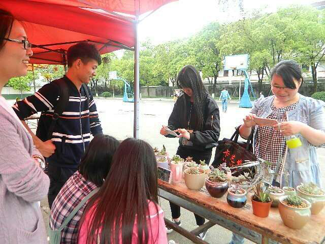 活动当天没有艳阳普照,但是经过前期充分的准备,当天领奖区依旧排起长龙,颇为壮观。展览区展现出众多盆造型各异,姿态优美的盆栽精品;充满创意与童趣的多肉盆栽纷纷亮相。不仅吸引了学子们的目光,更引得老师们的驻足欣赏。虽然现场盆栽种类繁多,但面对观赏人员的提问,工作人员还是游刃有余,并能向他们介绍这些盆栽的名称及种植方式。直至下午五点半,此次盆栽展正式结束。