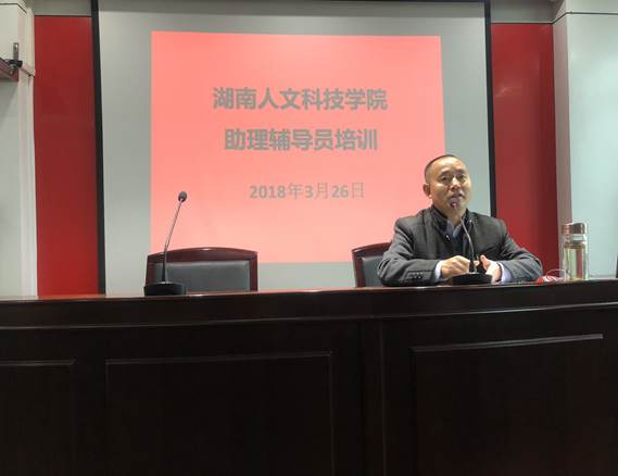 26日下午,校长刘和云为助理辅导员上课,他结合思政专业的特点,用生动形象的语言传达了学校对助理辅导员的期望,那就是扎实学好专业知识,将马克思主义基本理论融入到与时俱进的日常工作,做到思想政治教育润物无声。