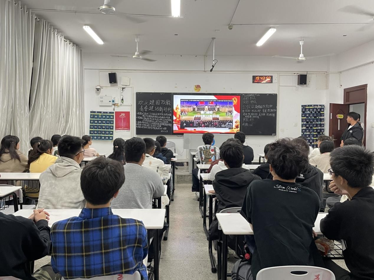 为深入学习党的光辉历程,传承红色基因,激发同学们的爱国情怀和奋斗精神,用实际行动为祖国的繁荣富强贡献青春力量。10月9日晚,校团委组织全校团支部举办“光辉历程75载,青春奋进新时代”主题团课。