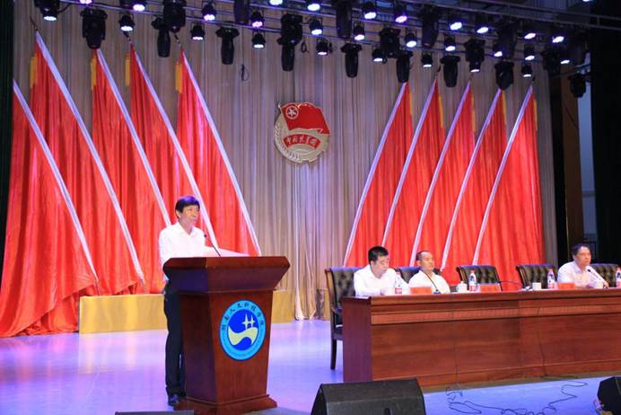 (图为校党委书记郭军在大会开幕式讲话)