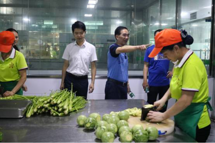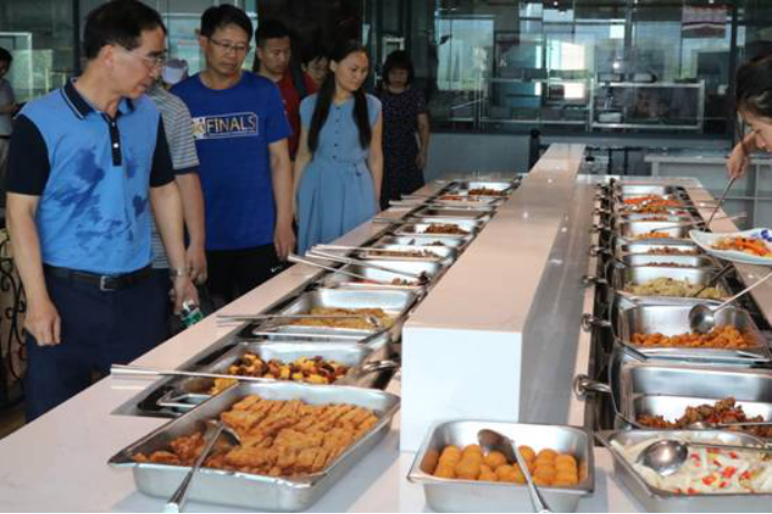 7月3日上午,党委委员、副校长蒋建初带领食堂监管考核领导小组成员对学校食堂两家餐饮托管公司进行了学期检查考核。