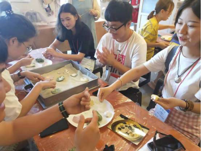 学生在学习制作韩国特色食品