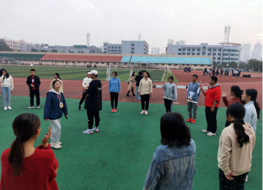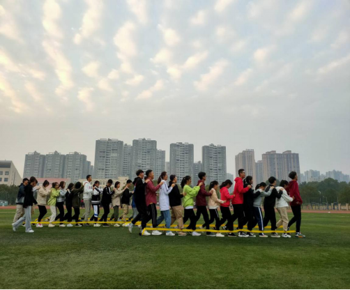 11月11日清晨,校学生会在田径场举行了素质拓展活动。校学生会全体成员参加了本次素拓。