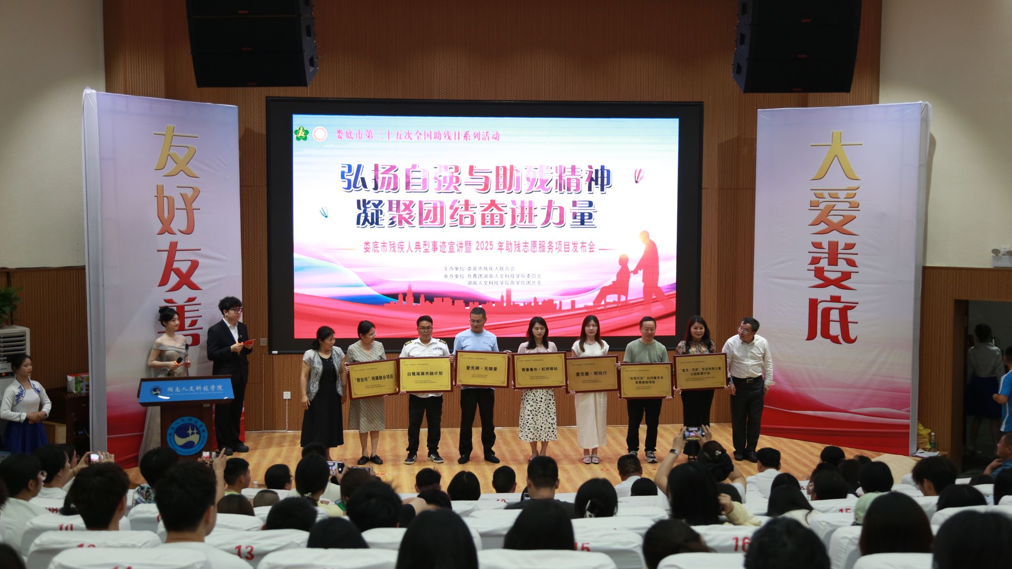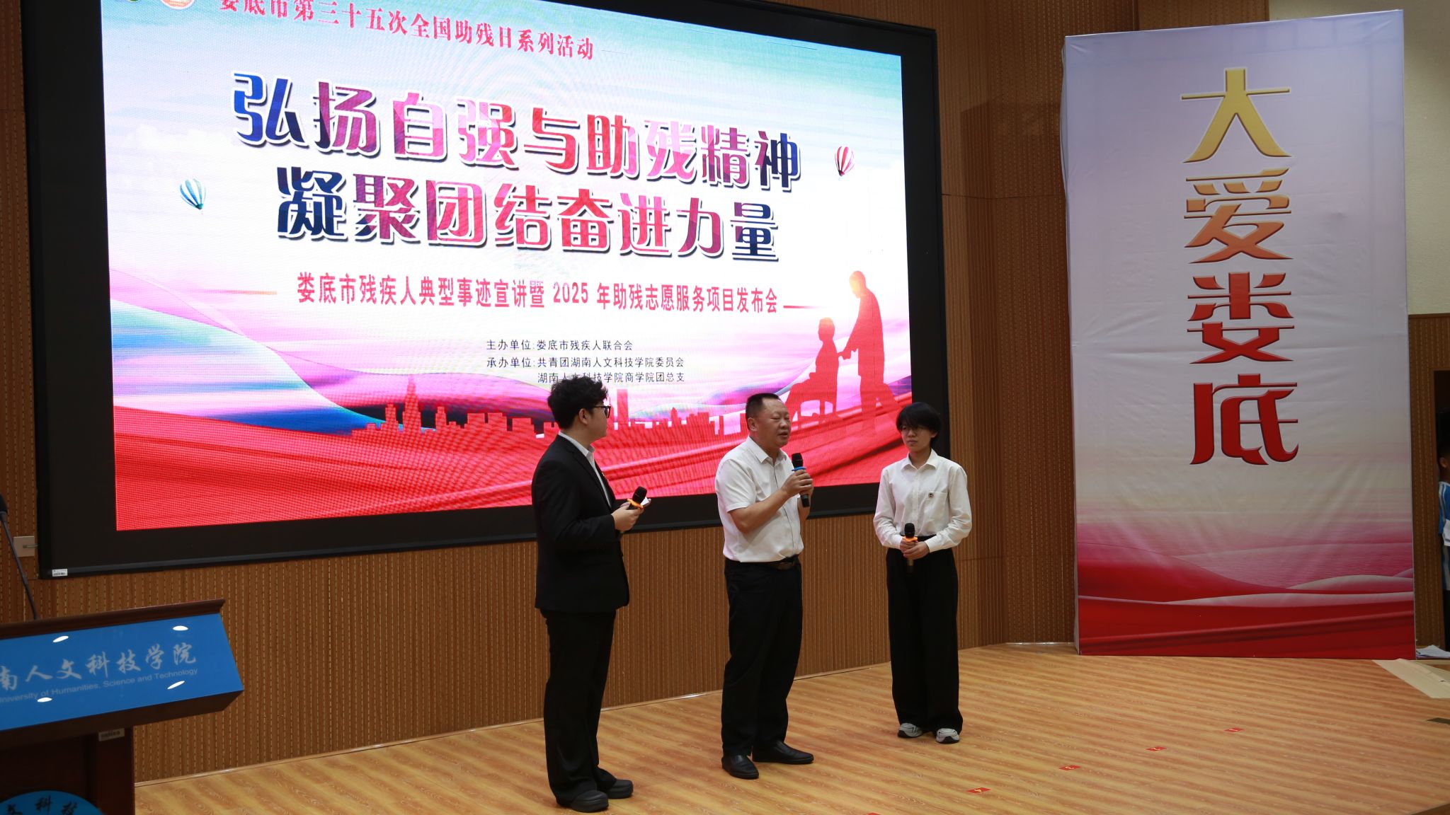 517日晚,娄底市第三十五次全国助残日系列活动——“弘扬自强与助残精神 凝聚团结奋进力量残疾人典型事迹宣讲暨2025年助残志愿服务项目发布会在beat365匠成楼报告厅举行。
