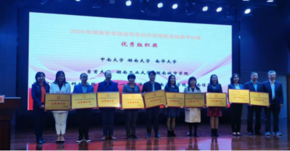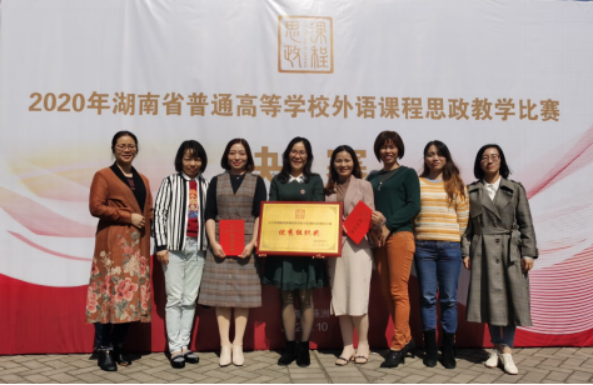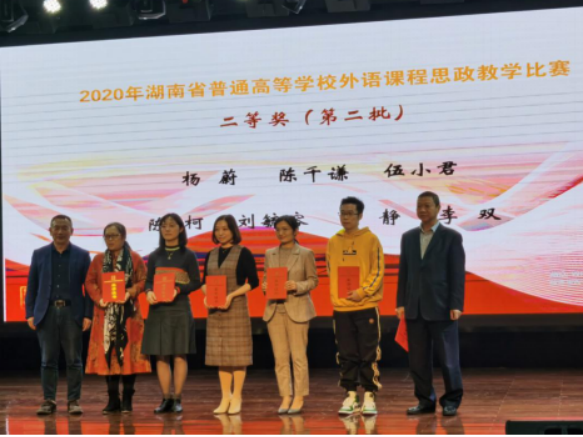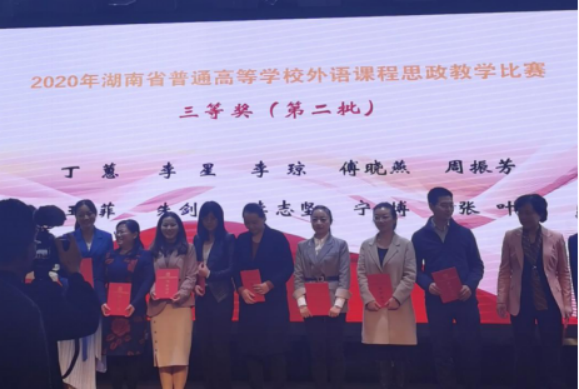 10月23日,湖南省普通高等学校外语课程思政比赛决赛在株洲工业大学外国语学院隆重举行,beat365英国官网外国语学院两支教学团队从101个教学团队(个人)中脱颖而出,与湖南大学、中南大学等25所省内高校同台竞技,经过激烈角逐,杨蔚团队(杨蔚、肖婷、韦萍、周祥艳)荣获英语专业组二等奖,王菲团队(王菲、刘欣磊、禹逸群、吴新红、邓梦林)荣获大学英语组三等奖,beat365英国官网喜获优秀组织奖。外国语学院将继续前行,不断探索,守好课程思政的一段渠、种好英语教学的试验田。