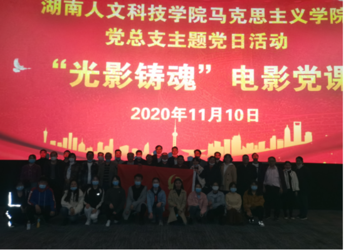 马克思主义学院党总支根据学校《关于开展“光影铸魂”电影党课的通知》 (校组发〔2020〕20号) 的文件精神,于2020年11月10日下午开展特色主题党日活动,将电影与党课相结合,组织全院教职工党员、干部在万豪城市广场左岸电影城观看爱国主义教育影片《金刚川》。《金刚川》是根据抗美援朝斗争中发生的真实故事改编的。故事中的英雄是真实存在的!正是这些不怕死的壮士们用血肉之躯铺就中华民族崛起之路!