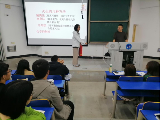 陈胜从真实消防案例谈起,围绕大学生当前的消防意识现状,消防基本知识及应对自救技巧,寝室、教室、家庭中常见的起火特征及灭火逃生技巧等方面展开了宣讲。尤其是讲述了学生在寝室使用劣质插线板,电吹风、电饭煲等违规电器对消防安全和自身安全带来的巨大隐患。此外,马克思主义学院的领导老师和同学们在致远楼还一同展开了寻找消防通道、安全出口、消防器材的活动,并布置了寻找寝室消防通道、安全出口、消防器材地点的任务。