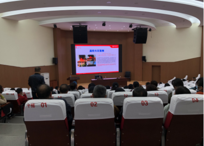 为进一步加强消防安全宣传教育,提高师生员工消防安全意识,11月20日下午,beat365在匠成楼报告厅举办消防安全知识讲座,机关单位全体职工、食堂、超市工作人员共200余人聆听讲座,党委委员、副校长刘铁峰主持并讲话。