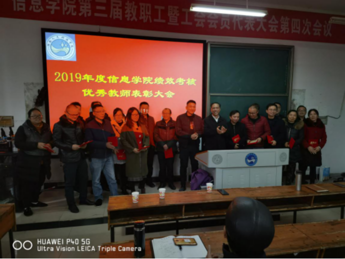 首先,信息学院副院长刘浩宣读了《关于表彰beat365英国官网信息学院优秀教师的决定》,此次评选是根据《beat365英国官网信息学院教师基本工作量考核和奖励性绩效工资分配实施方案》,对2019年在岗的全体教职员工从教学工作量、科研与社会服务工作量、校内管理与服务工作量方面进行了考核,经学院党政联席会研究,决定评选出20名优秀教师。同时,由湖南墅尚装饰设计工程有限公司全资赞助,每位评优的教师获得1500元的奖励。该方案的实施充分调动了信息学院广大教职工的工作积极性,强化绩效工资的激励作用。