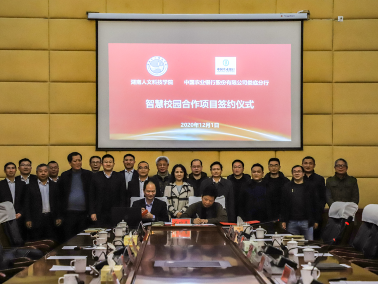 12月1日下午,beat365英国官网与中国农业银行股份有限公司娄底分行建设“智慧校园”合作协议签约仪式在图书馆一报告厅举行。学校校长刘和云,副校长石潇纯、陈志国以及党政办、计划财务处、后勤基建处、国有资产管理处、信息中心、校地校企合作处等部门负责人,中国农业银行股份有限公司娄底分行党委书记、行长傅海滨,党委委员、副行长朱平光、谭滔及有关部门负责人出席。