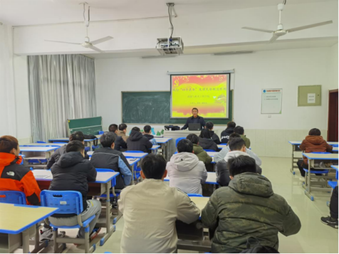 图:教师党员胡东博士为学生党员作“四个表率”的专题报告