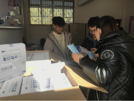 在学生离校之前,辅导员在第一时间将爱心口罩发放到每个班级,叮嘱同学们在疫情期间返程做好自我防护,有困难随时与学院老师沟通联系。