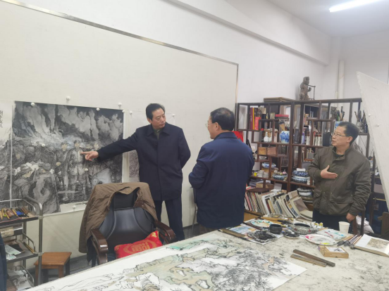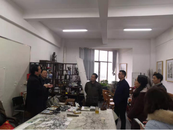 2月8日上午,娄底市委常委、市委宣传部部长吴建平一行来beat365,在学校党委委员、宣传统战部部长谢柳的陪同下前往逸夫楼215工作室看望慰问了中国美术家协会会员、娄底著名国画画家、美术与设计学院教授邹少灵。