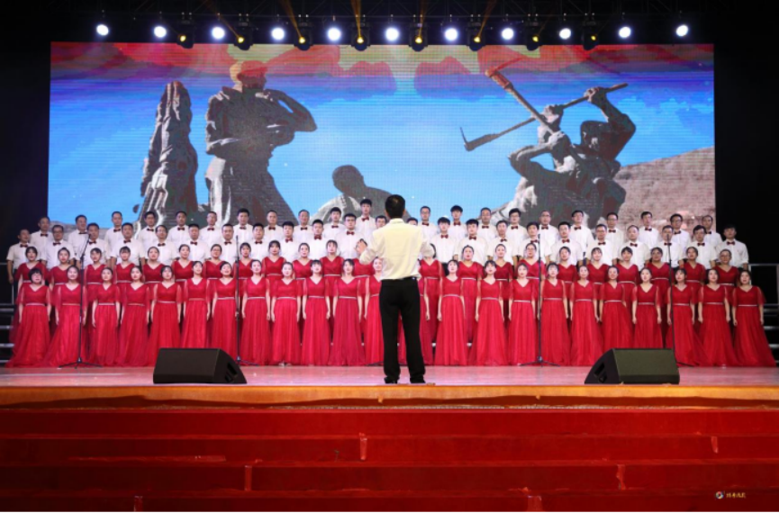随着《保卫黄河》乐曲奏响,师生合唱比赛正式开始。开场曲目《保卫黄河、东方红合编》由11位校领导领衔的机关联合一队精彩演唱。随后,16支参赛队依次登台,用高亢嘹亮的歌声唱出对党的无限热爱和礼赞!一首首经典红歌再现了一段段激情燃烧的革命岁月,再现了中国共产党走过的波澜壮阔的百年历程,红歌如海,掌声如潮,参赛队的精彩演绎充分展现了学校师生喜迎建党百年的精神面貌,大家从歌曲中汲取坚定初心使命的营养剂和动力源。