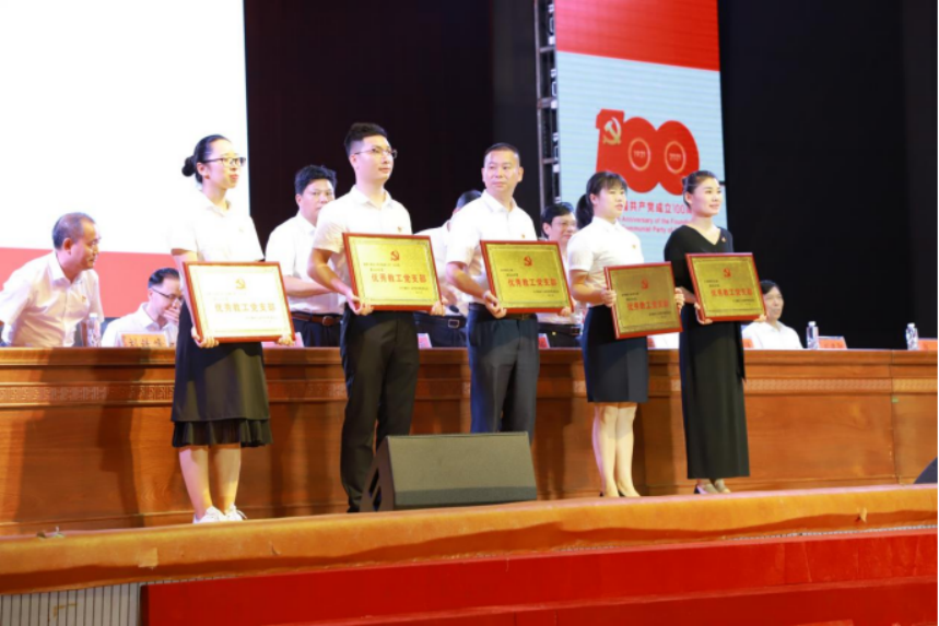 “新党员宣誓,老党员重温入党誓词”环节将大会推向高潮。在刘和云书记的带领下,全场党员举起右手握拳,面向党旗,庄严宣誓。在激昂的《国际歌》歌声中,总结表彰大会落下帷幕。