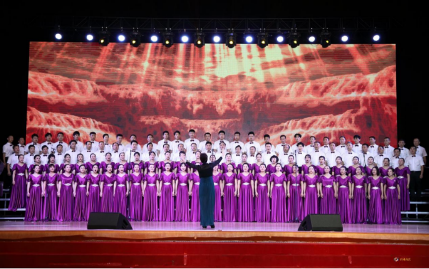 (图为机关联合一队演唱《保卫黄河、东方红合编》)