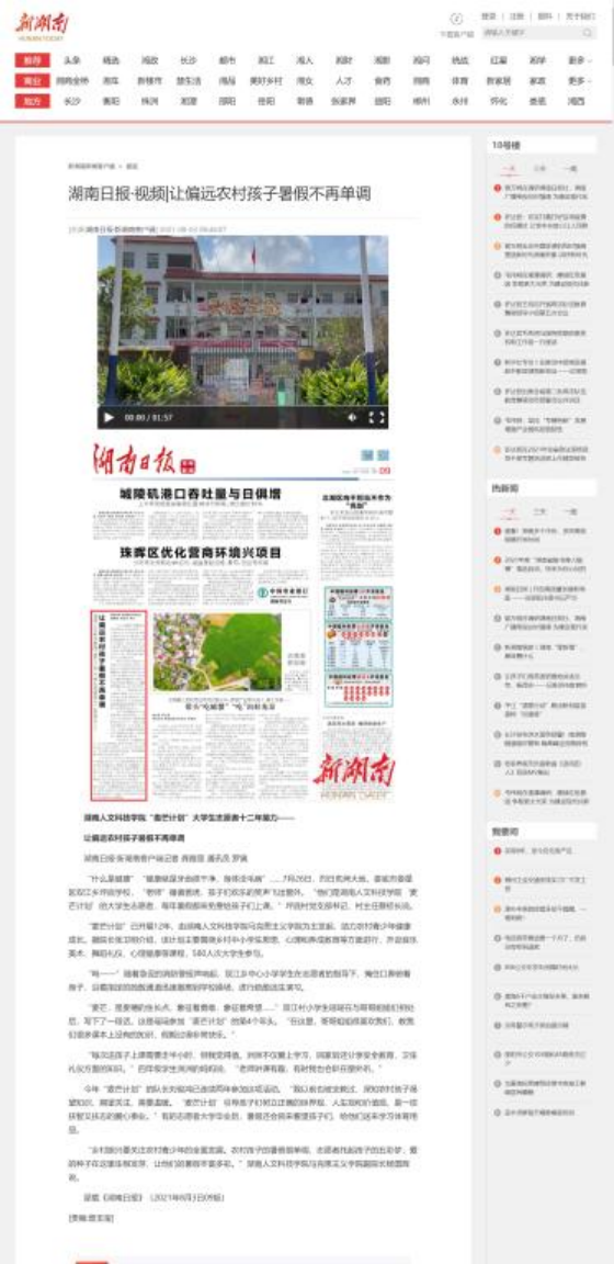 8月3日,湖南日报•新湖南客户端以《beat365英国官网“麦芒计划”大学生志愿者十二年接力——让偏远农村孩子暑假不再单调》为题报道了我院“麦芒计划”的开展情况。