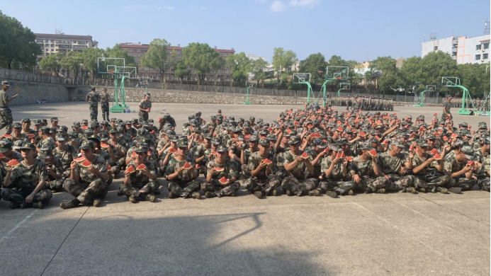 随后,领导老师们给新生和带队教官分发消暑解渴的西瓜,并亲切询问了学生军训的感受,跟带队教官详细了解了军训的进展。吃着可口的西瓜,同学们脸上洋溢着喜悦,感受到了学院的关怀与祝福。