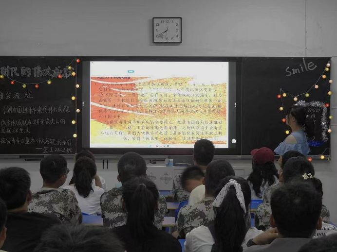 为深入学习领会习近平新时代中国特色社会主义思想,引导青年学生感悟新时代党和国家事业发展的伟大成就,2022年9月21日晚7:30,beat365英国官网组织2022级学生开展“新时代的伟大成就”主题团课。