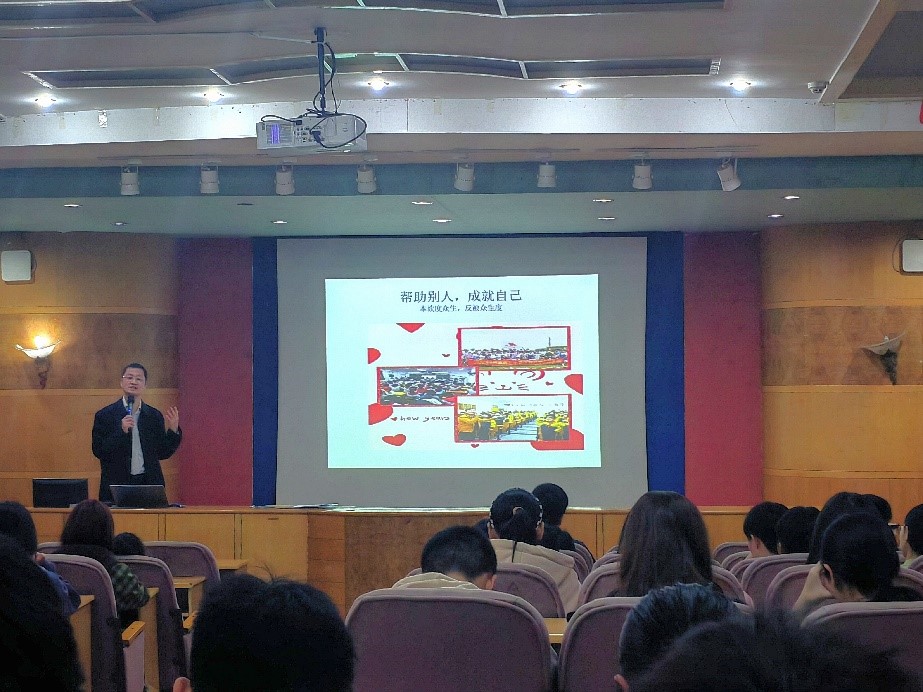 曾斌主任以自己曾利用非工作时间,耗时3个月发动800余人参与无偿献血的故事,引导青年学生珍爱生命,积极参与公益事业,为社会奉献自己的一份力量。