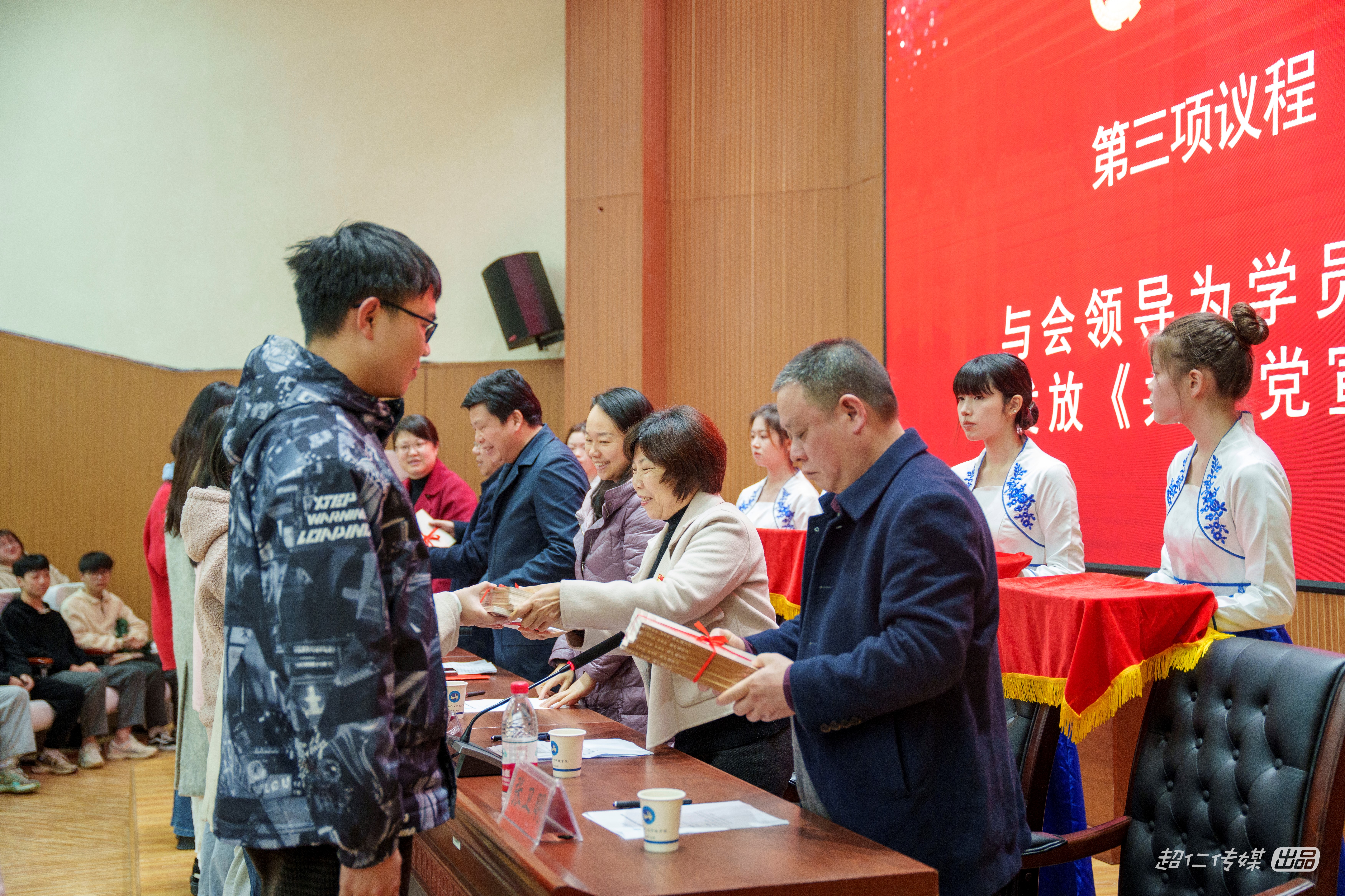 (与会领导老师为学员发放学习书籍《共产党宣言》)