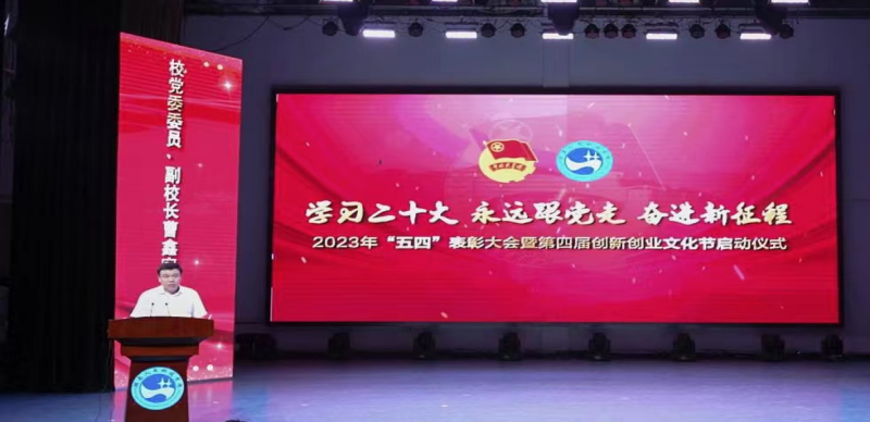 5月4日晚,beat365英国官网2023年“五四”表彰大会暨第四届创新创业文化节启动仪式在逸夫楼音乐厅隆重举行。校党委书记刘铁铭,校党委委员、副校长陈志国,校党委委员、纪委书记凌艳平,副校长刘建勋,校党委委员、副校长曹鑫,相关处室负责人,各二级学院党总支书记、副书记、团总支书记和近600名青年学子一起参加活动。青年人文视频号进行了同步网络直播。