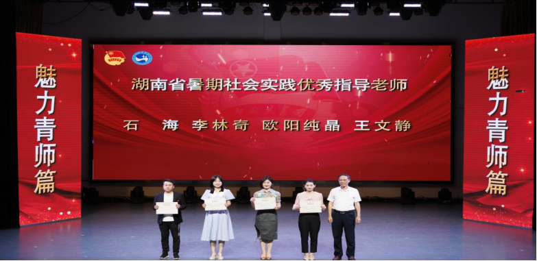(图为校党委书记刘铁铭为湖南省暑期社会实践优秀指导老师颁奖)
