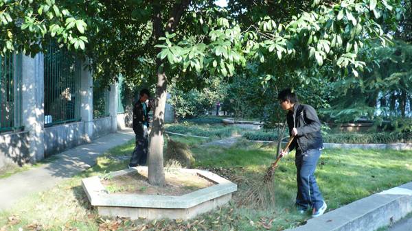 按照事先安排,各组分工合作,一组负责清扫系办公楼前坪的枯叶与垃圾,部分组前往各实验室进行彻底的大扫除,另有一部分组负责整理实验设备和仪器。