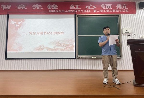 活动伊始,石海在致辞中强调,师生党员要始终牢记习近平总书记的殷殷嘱托,“推动科技自主创新和人才自主培养良性互动”,“不断提升服务国家重大战略和区域经济社会发展能力”。学科竞赛与创新创业是学院培养高素质应用型人才的重要抓手,他勉励学生党员以“党建引领创新、创新驱动发展”为理念,将个人成长与国家需求紧密结合,在实干中锤炼工匠精神,在挑战中践行科学家精神。他表示,学院始终以“为党育人、为国育才”为使命,通过搭建竞赛平台、优化导师团队、深化校企合作,助力学生成长成才。