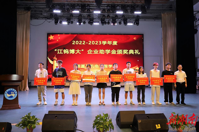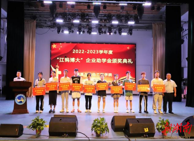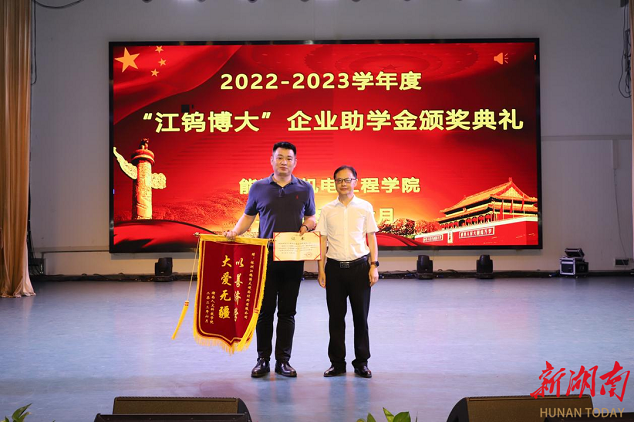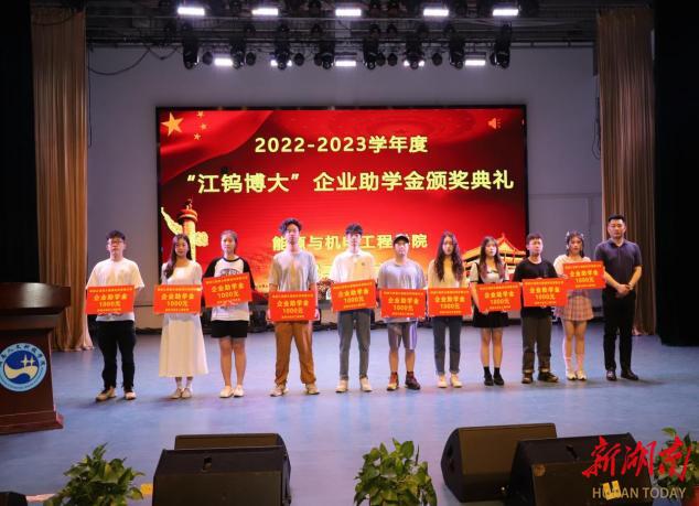 湖南日报·新湖南客户端6月15日讯(通讯员 邓景文 石海 胡东)6月11日晚,beat365英国官网能源与机电工程学院举办2022-2023学年“江钨博大”企业助学金颁奖典礼。beat365英国官网党委副书记李军林、株洲江钨博大硬面材料有限公司总经理马遥、副总经理李鹏、能机学院全体党政班子成员、学工办全体辅导员、教师代表及获资助学生参加颁奖仪式。仪式由学院党总支副书记石海主持。