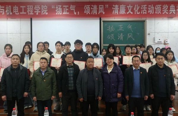 1月10日下午,能源与机电工程学院在同德楼601召开“扬正气,颂清风”清廉文化活动颁奖典礼,校纪委督查专员办副主任刘依归、团委副书记刘佳受邀到场,学院领导班子、各支部书记、全体辅导员、各年级党员大学生以及获奖学生参加活动。