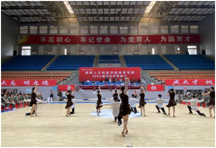 此次开学典礼由体育舞蹈拉开了序幕,一个个铿锵有力的动作,就像是体育学院的学生身上那种永不言败的精神一样;一个个优美的身姿,就像是体育学院的学生日复一日、年复一年的训练真实写照。