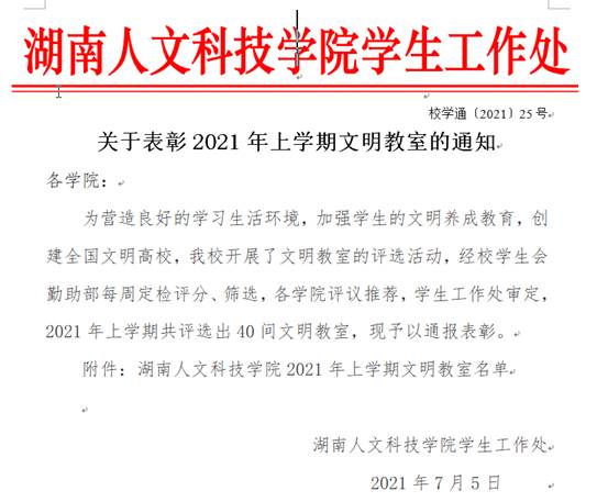 beat365英国官网2021年上学期文明教室名单