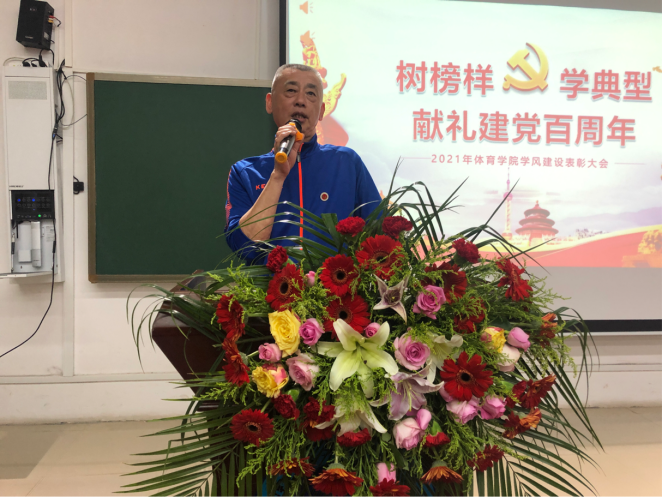 为庆祝建党百年华诞,5月18日晚,体育学院在博达楼115教室召开“树榜样,学典型,献礼建党百周年”学风建设表彰大会。体育学院党总支书记蒋毅、院长刘玉江、副书记谢嘉、副院长曾黎出席表彰会,全体班主任、辅导员、优秀学生代表参加了大会。