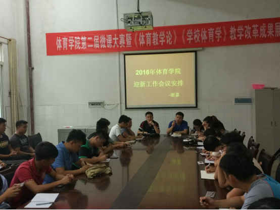 201696日下午四点半体育学院在体育馆会议室召开2016年迎新工作会议,本次会议由谢嘉副书记主持,辅导员老师,16级新生班主任、代班,学生会以及团总支的干部参加本次会议。