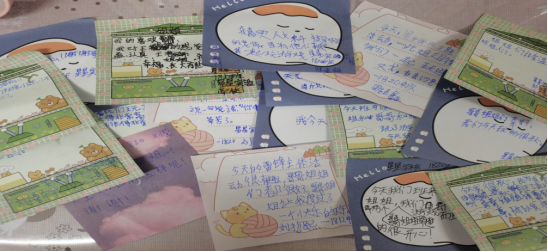 室外活动活动后,我们与小朋友们一起打扫了校园卫生,然后将小朋友们带回教室,请他们写下此次学雷锋活动的感想,小朋友们都非常积极认真的将自己感想写在了小卡片上。