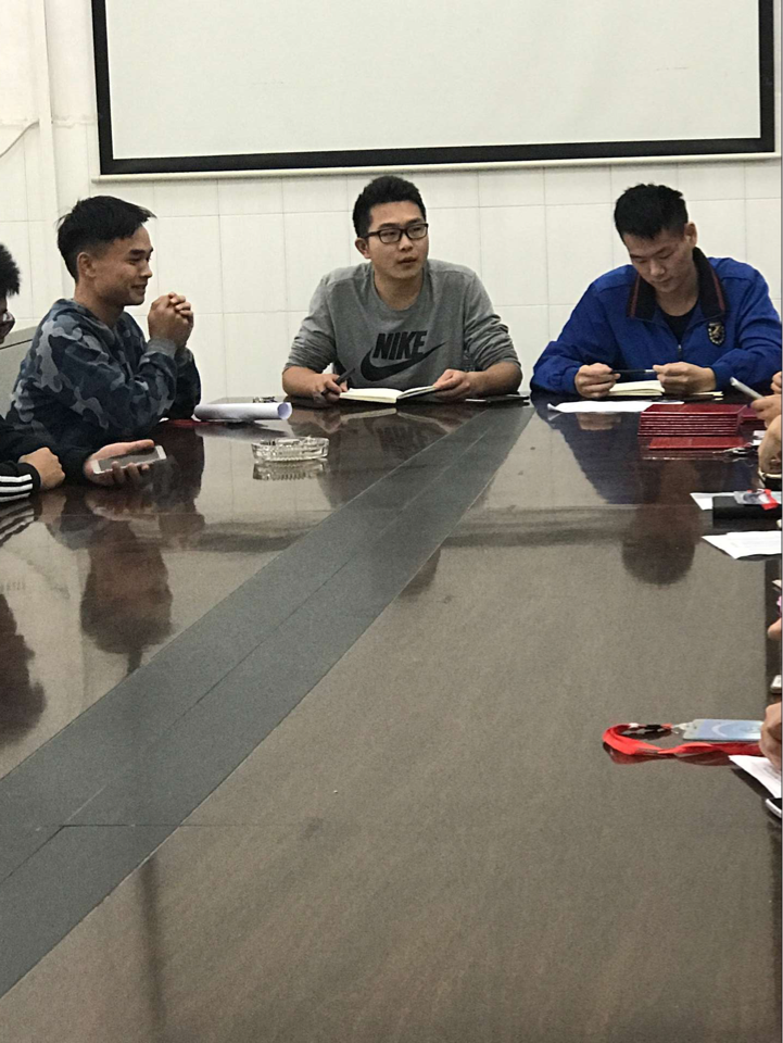 2016年10月12日12点30在体育馆会议室内召开了体育学院学生会本学期第一次全体学生会干部例会,辅导员徐彬老师出席了本次会议,。会议由学生主席郝梁爽同学主持。