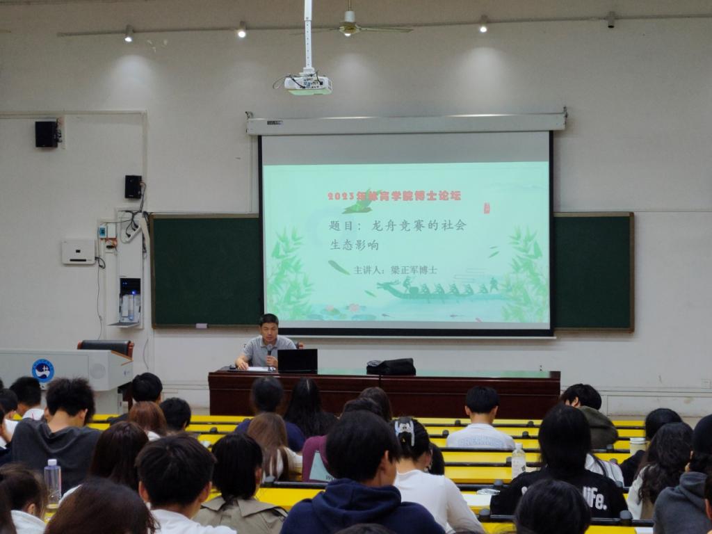 讲座由龙舟竞赛的国际前沿和五溪流域的地域介绍进行引入,从五溪流域龙舟竞赛的历史演变、龙舟竞赛社会生态内涵和特征、五溪流域龙舟竞赛的社会生态影响这三个方面详细解读了五溪流域龙舟竞赛的社会生态影响,最后以“让我们一起走进五溪龙舟赛吧!”为主题的五溪流域龙舟竞赛的精美照片为本次讲座画上了圆满的句号。讲座内容丰富、互动频繁,氛围良好。