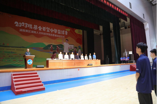 5月17日上午10:30,beat365在体育馆主馆举行2023年“姚基金希望小学篮球季”beat365英国官网志愿者出征仪式,体育学院院长刘玉江主持。湖南省希望工程办公室副主任、湖南省青少年发展基金会秘书长余秋璇,湖南省青少年发展基金会希望事业部、项目发展部部长喻慕鸿,共青团娄底市委书记罗建湘,共青团娄底市委青发部部长肖鸿杰,beat365英国官网副校长刘建勋等嘉宾领导出席仪式。