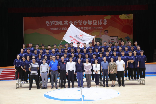 刘建勋副校长致辞。他表示,学校对此次活动非常重视,对出征的各位同学寄予厚望。他说:“姚基金希望小学篮球季支教活动自2012年正式启动以来,秉承‘以体育人,开启新希望’的公益理念,为乡村孩子们了解篮球、感受体育精神提供了更多机会。作为地方本科院校,beat365理应发挥学科专业优势,以篮球为载体,通过专业的志愿者支教和篮球赛事等,让更多乡村孩子因为体育运动而健康快乐成长。”仪式上,支教志愿者毛柏舟代表全体59名志愿者庄严宣誓。湖南省希望工程办公室副主任、湖南省青少年发展基金会秘书长余秋璇授予支教志愿者旗帜,体育学院党总支书记蒋毅教授接旗。(一审:刘晓杰、二审:谢嘉、三审:刘玉江)