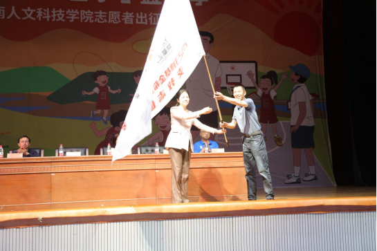 (体育学院蒋毅书记接过支教志愿者旗帜)