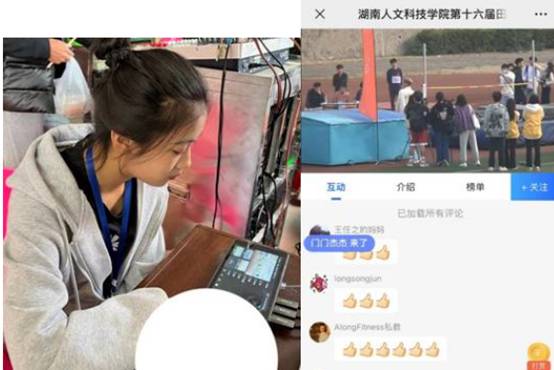 运动会开始之际,直播同时开启,师生、校友、家长等均可通过赛事平台观看运动会盛况和精彩瞬间,在线观众保持在2000人以上。在两天的激烈比赛中,高清、流畅的画面把学生顽强拼搏,奋勇争先的精彩瞬间实时传送到师生和社会观众面前,展现人文学子胜不骄败不馁的精神风貌。本次直播得到了社会的良好评价,认为体现了体育学院创新发展的新思维、新理念。