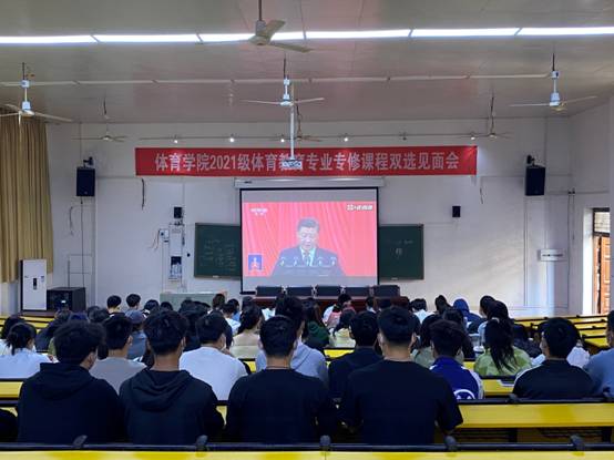 体育学院学生在博达楼教室集中观看党的二十大开幕式