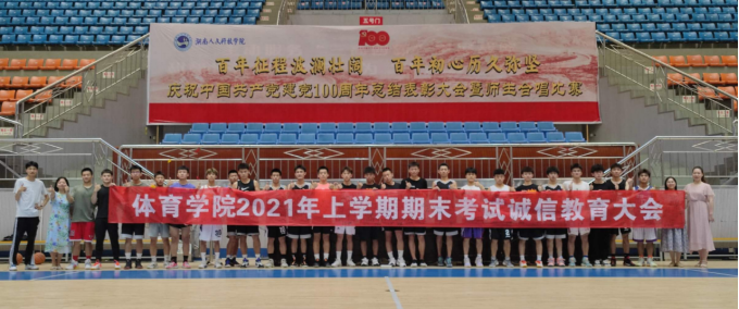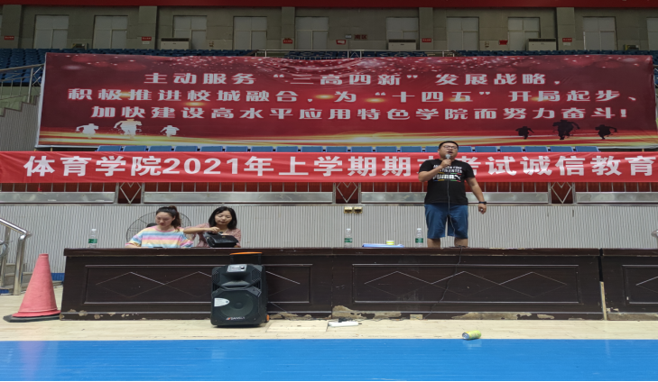6月24日下午,体育学院在体育馆主馆召开2021年上学期期末考试诚信教育大会。院党总支副书记谢嘉应邀出席了此次会议,全体辅导员、班主任及2018级、2019级、2020级全体学生共计800余人参加此次会议