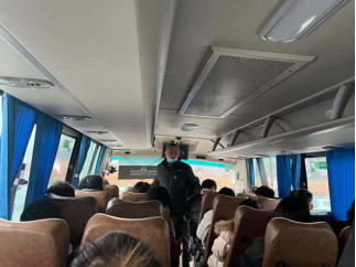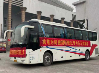 2020年12月26日早上七点整,我院研究生考试送考专车已抵达体育馆前,整装待发。由院长刘玉江教授亲自带队,与考研学子进行交谈,指导送考工作